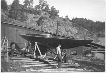 båtbygge slutförs. Båten ritades av Peter Norlin och var ett vackert