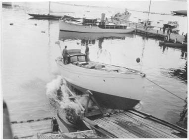 ![]() Motorbåt ritad av Reimers förbereds för sjösättning, Byggår 1939.