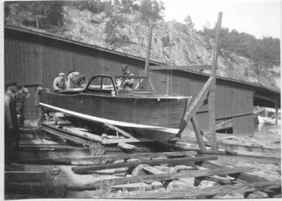 ![]() Motorbåt ritad av Reimers förbereds för sjösättning, Byggår 1939.